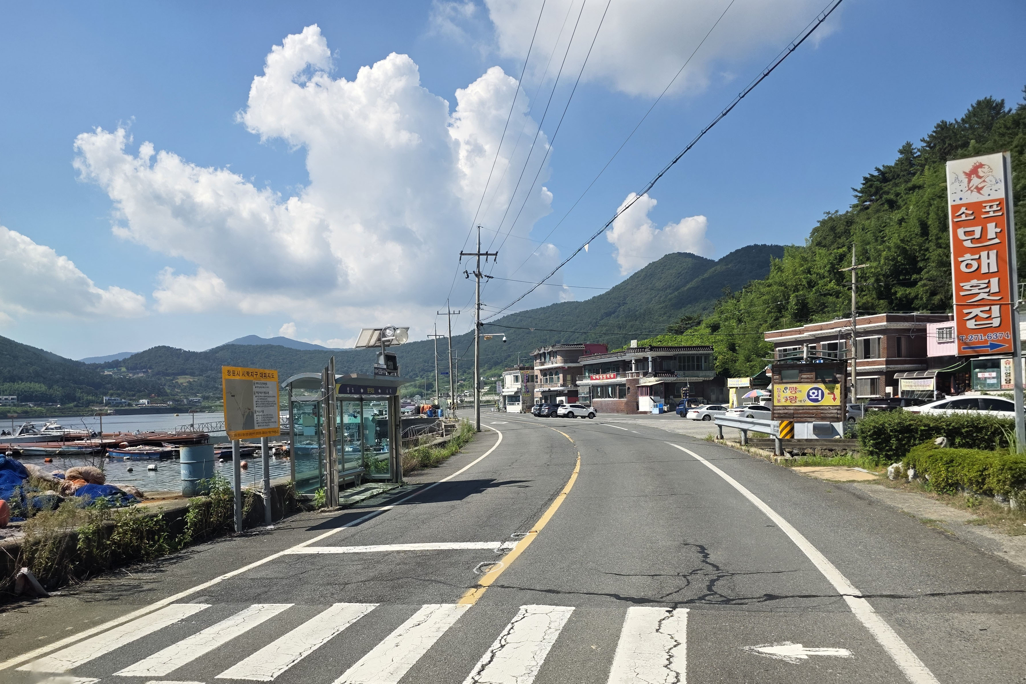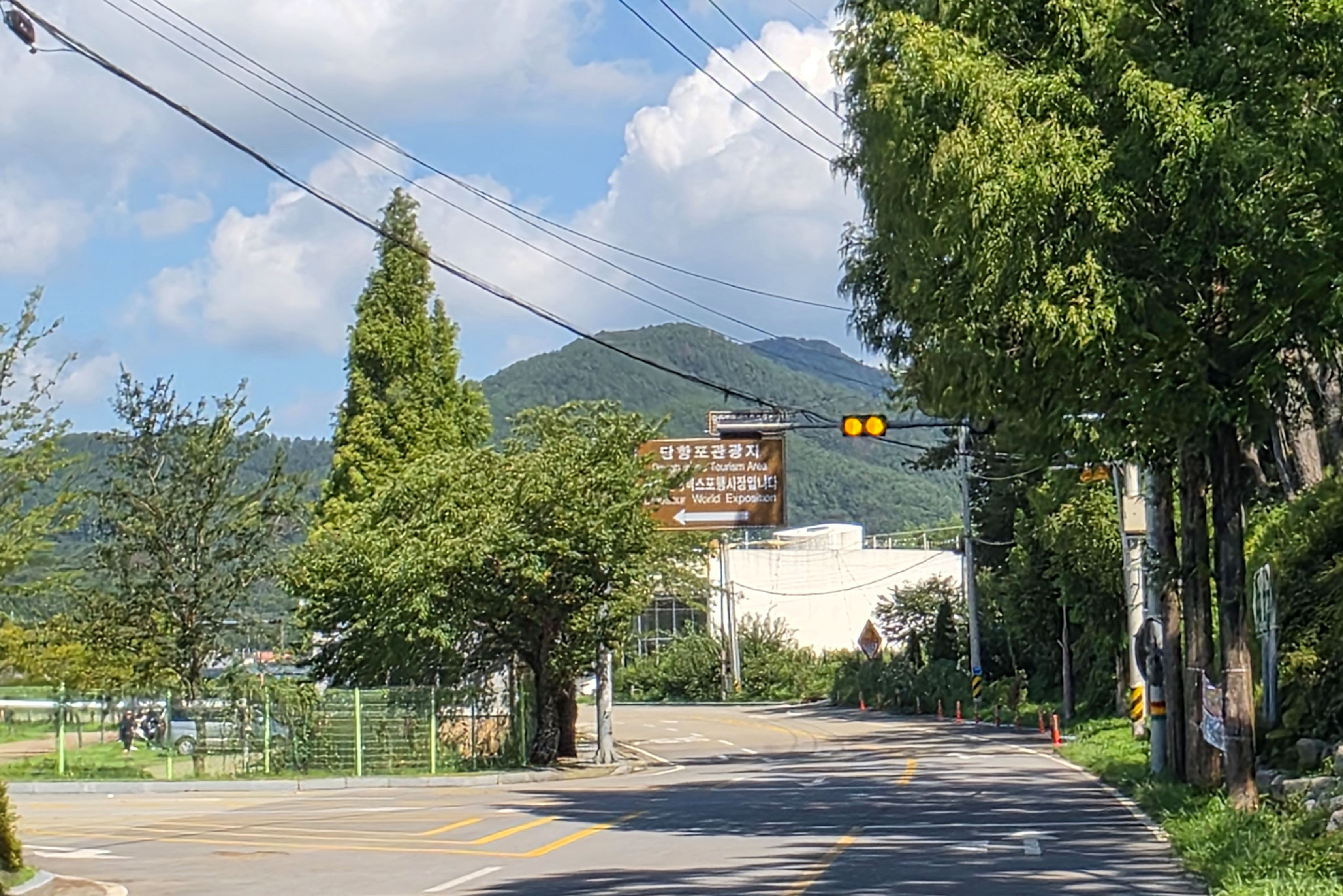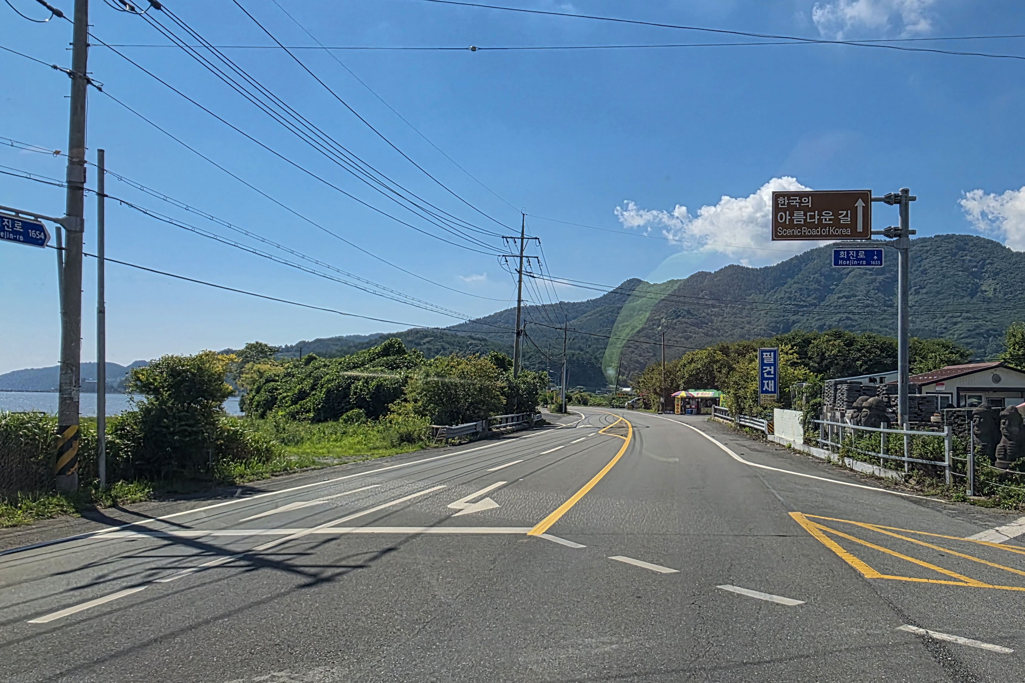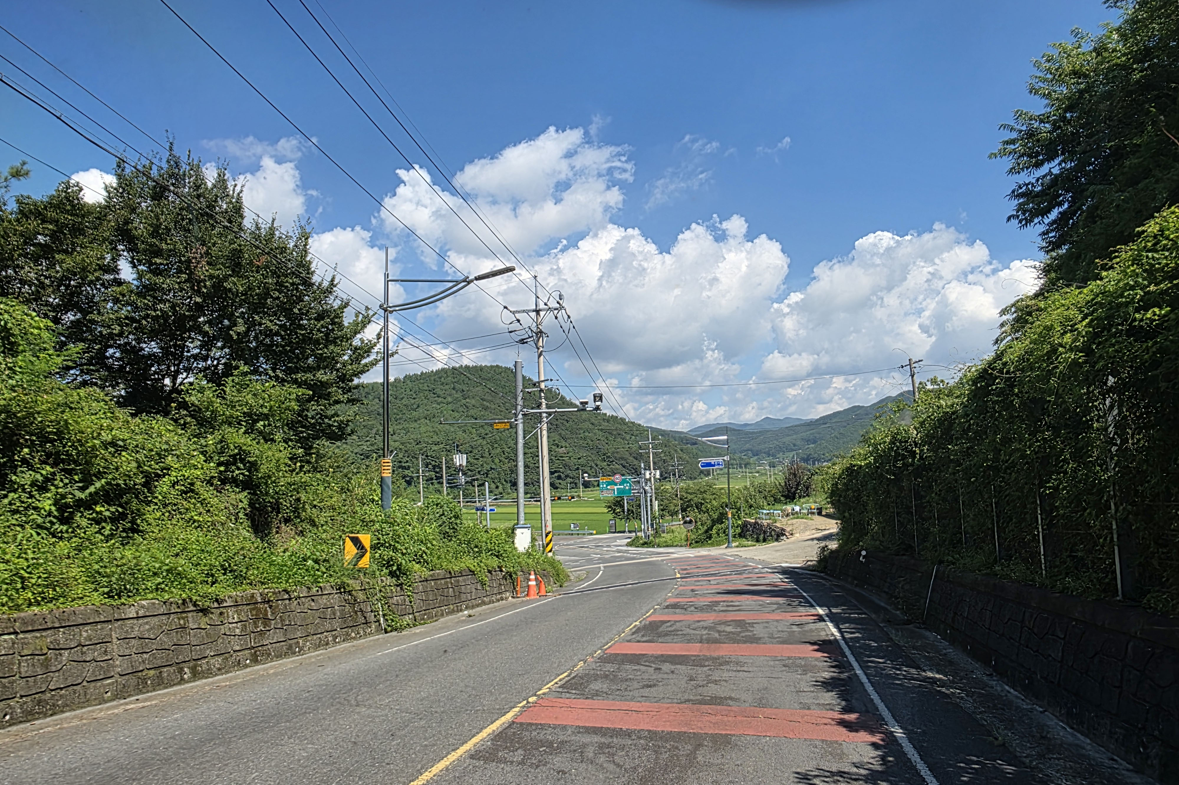 정곡마을을 지나면서 도로는 산속 도로로 전환된다. ‘한국의 아름다운 길’이라는 표식이 이어진 이 구간은, 이름 그대로 걷고 싶은 길이었다. 짙은 녹음과 간간히 들리는 새소리, 그리고 발끝에 전해지는 부드러운 흙길은 걷는 기분으로 조용한 위로를 건넸다.