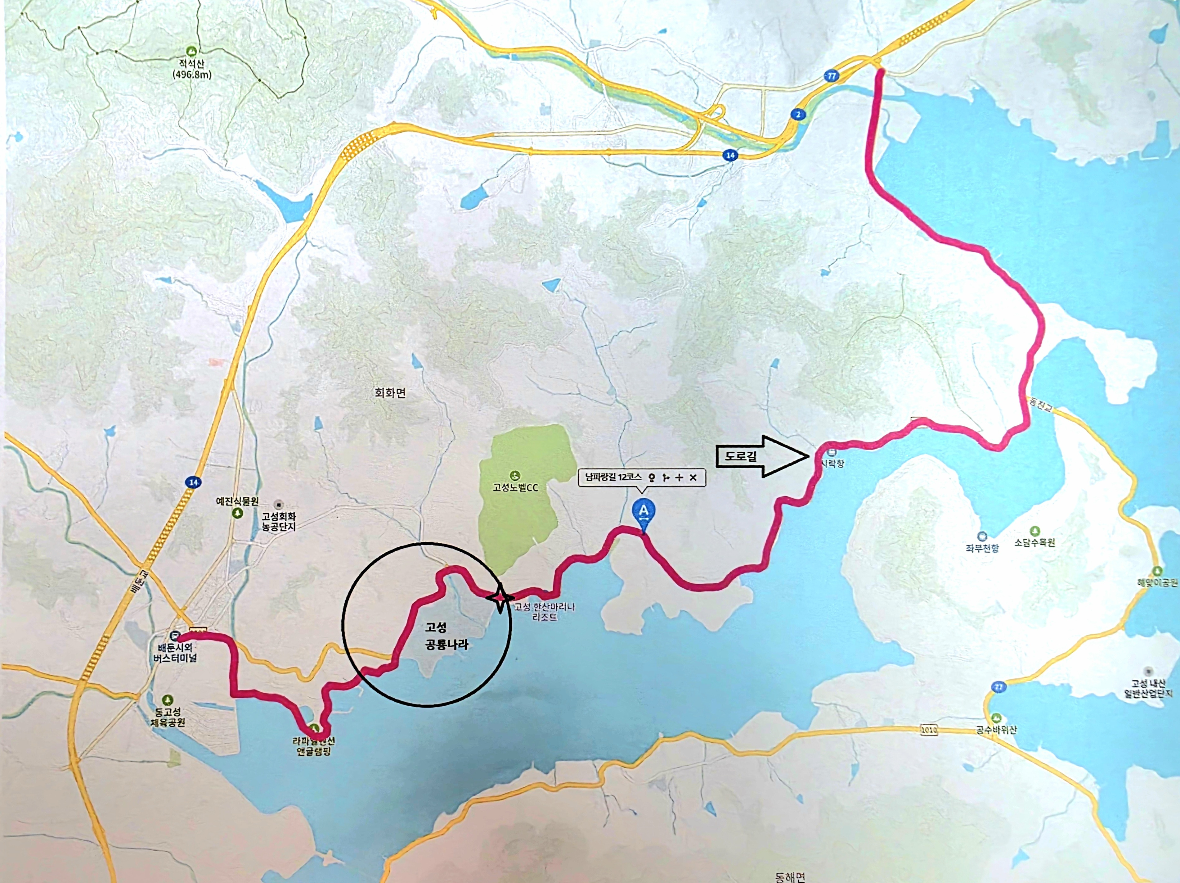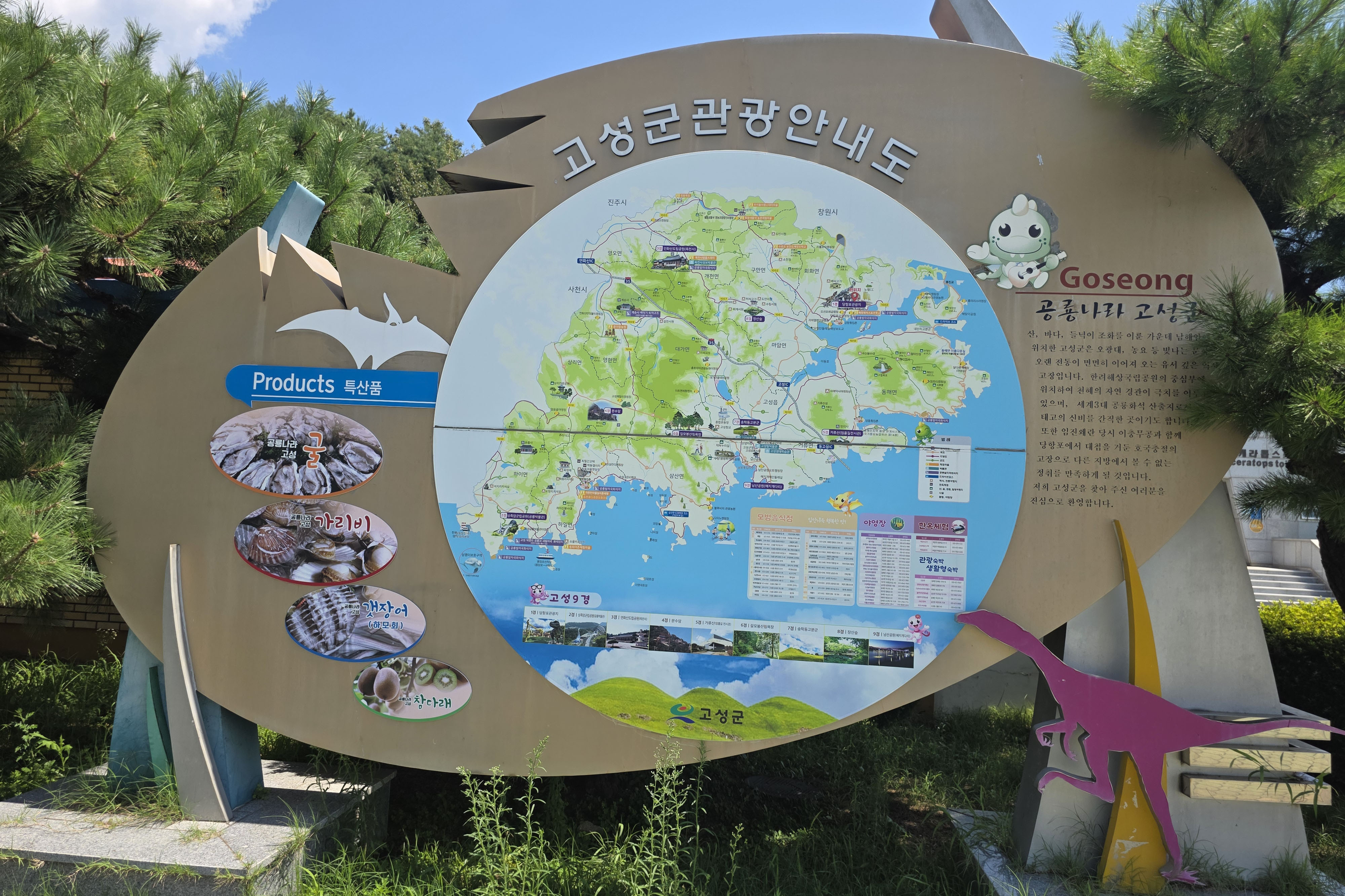 당항포 관광지 안내판이 보이자, 투어단은 발길을 고성 공룡엑스포장으로 돌렸다. 어린이 물놀이장이 가득한 공룡 퇴마공원과 고성공룡박물관은 여전히 가족 단위 방문객으로 북적였고, 이는 걷기 여정 속에서 느끼는 뜻밖의 활기였다.