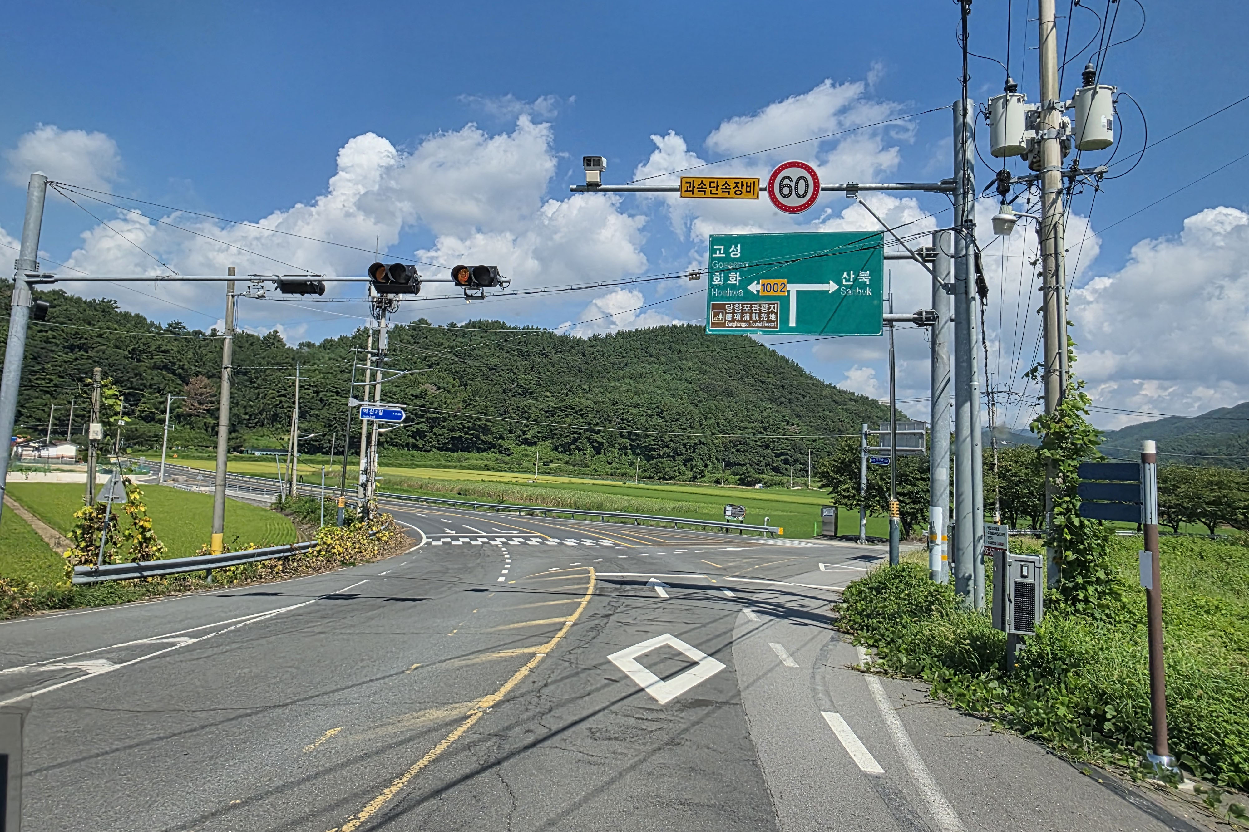 이른 아침, 투어단은 암아교차로를 출발해 고성군을 향한 긴 도보를 시작했다. 초반 구간은 창포마을과 정곡마을을 지나며 도심과 전원 풍경이 교차하는 길이었다. 그러나 그늘 한 점 없이 직사광선을 그대로 받는 도로 구간은 쉽지 않은 도전이었다.