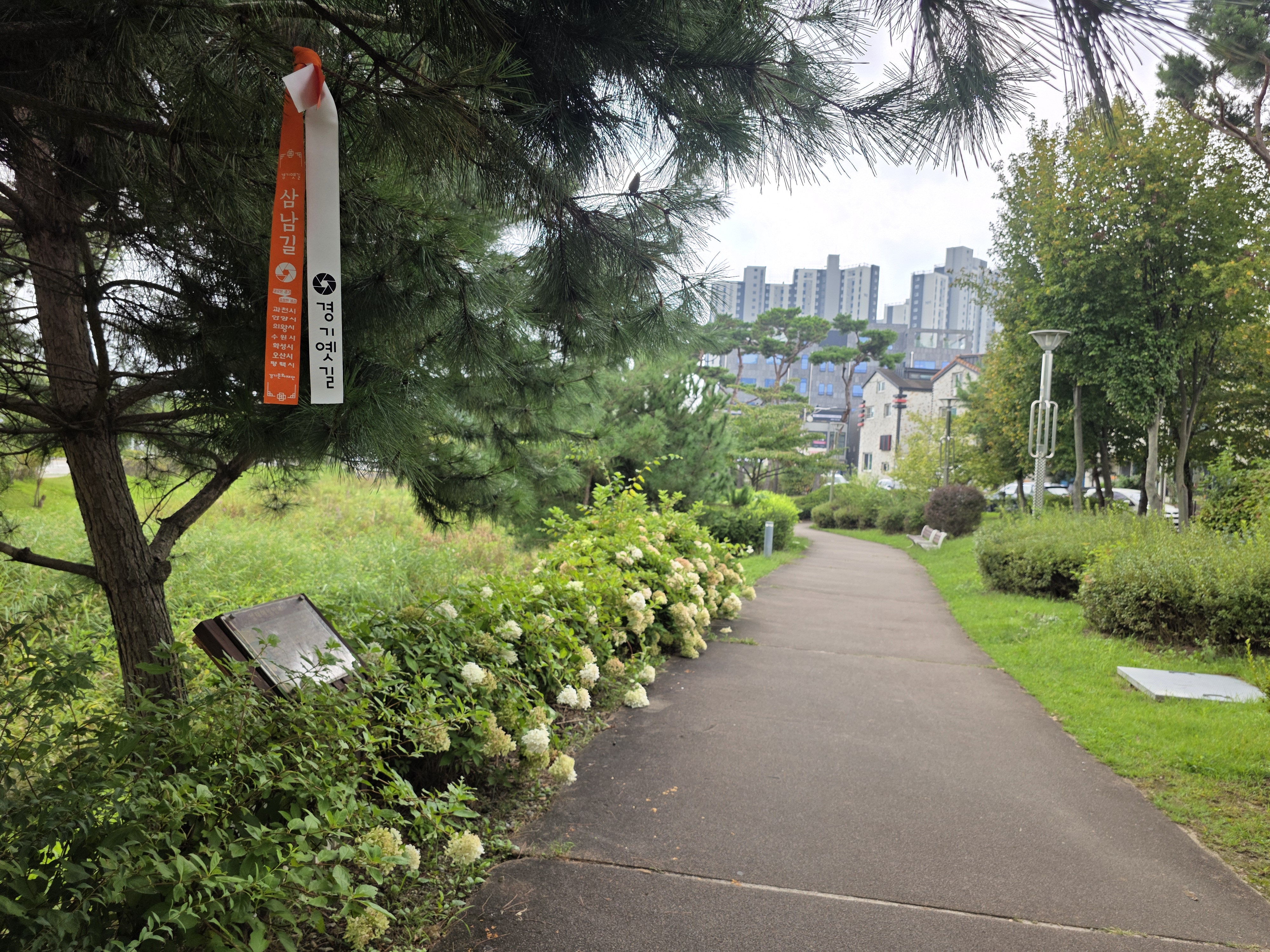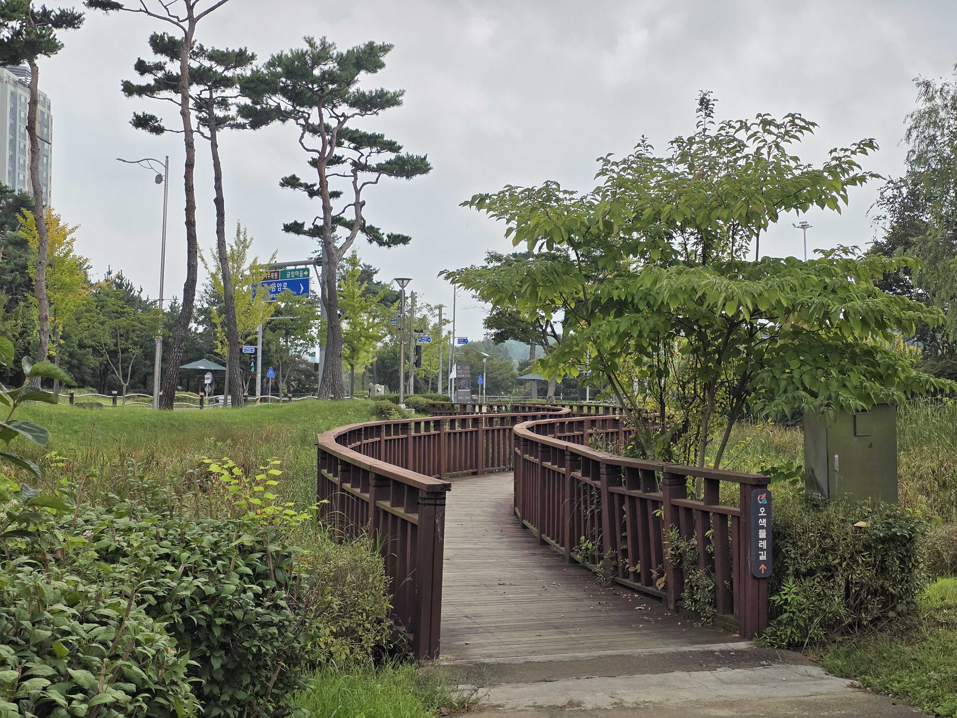숲길이 끝나갈 즈음, 신흥 주거지인 세교지구 아파트 단지가 눈앞에 펼쳐진다.