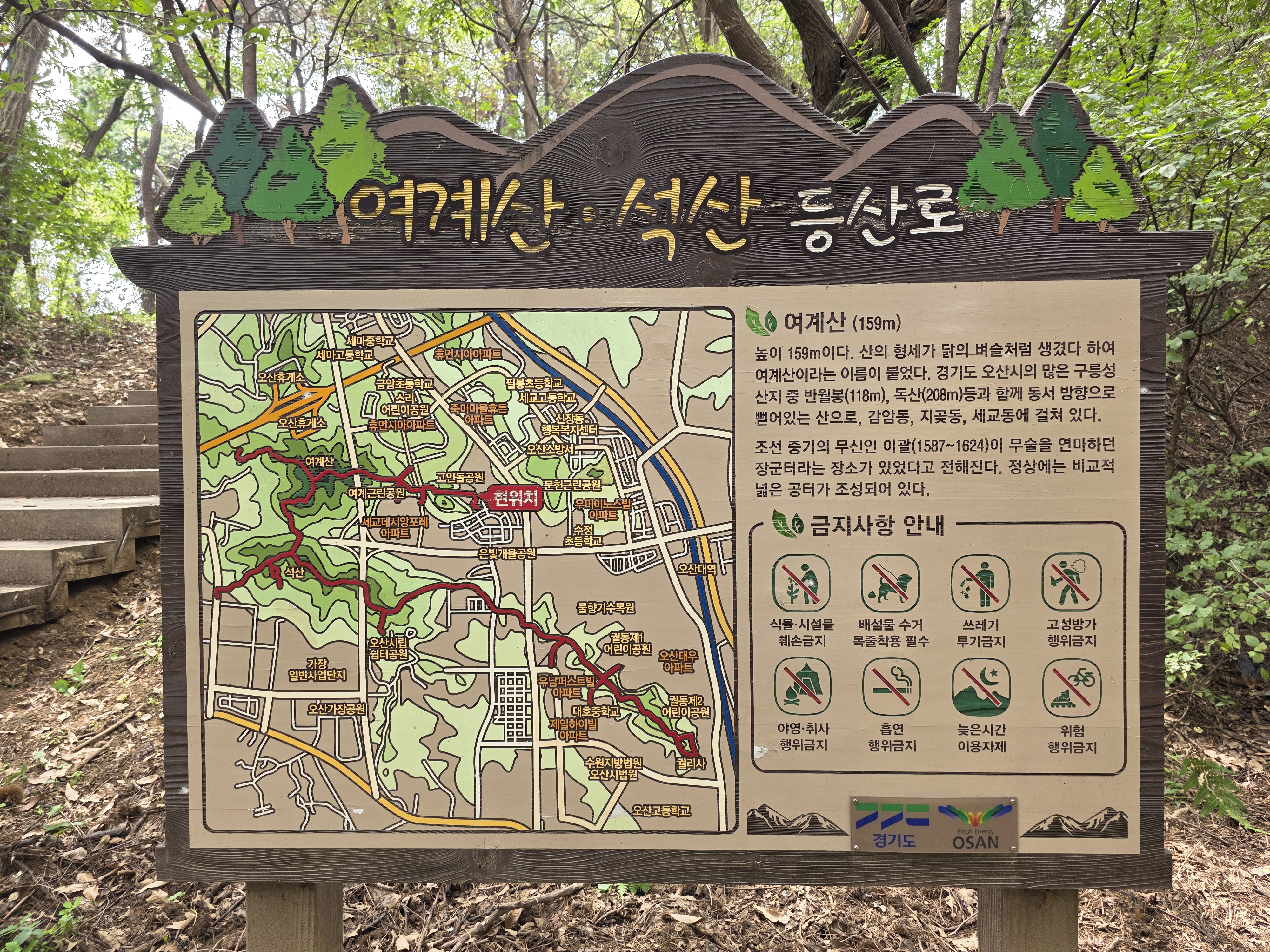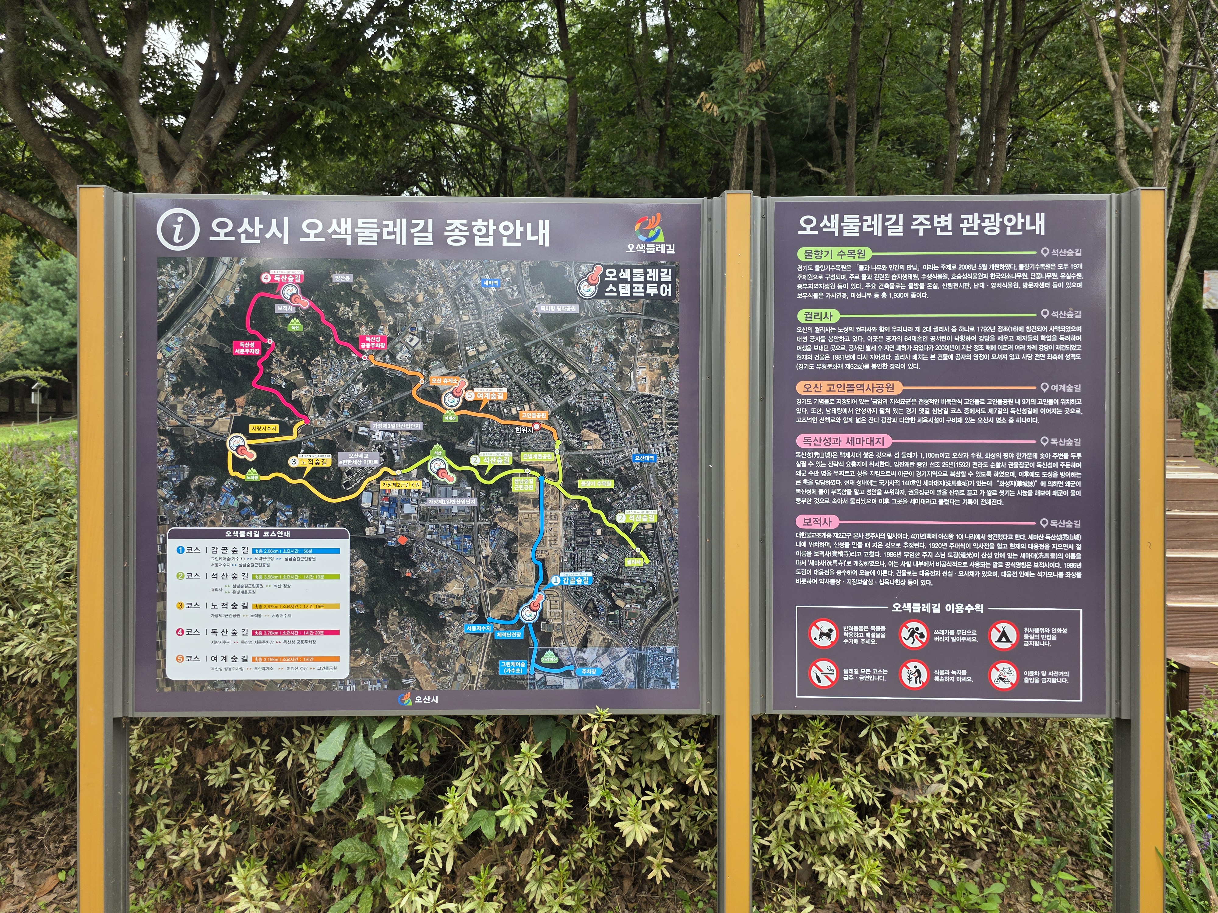 이번 도보에서는 중간 구간이 수해 복구로 통제되어 오히려 독산성을 깊이 있게 돌아보는 특별한 시간을 가질 수 있었다.