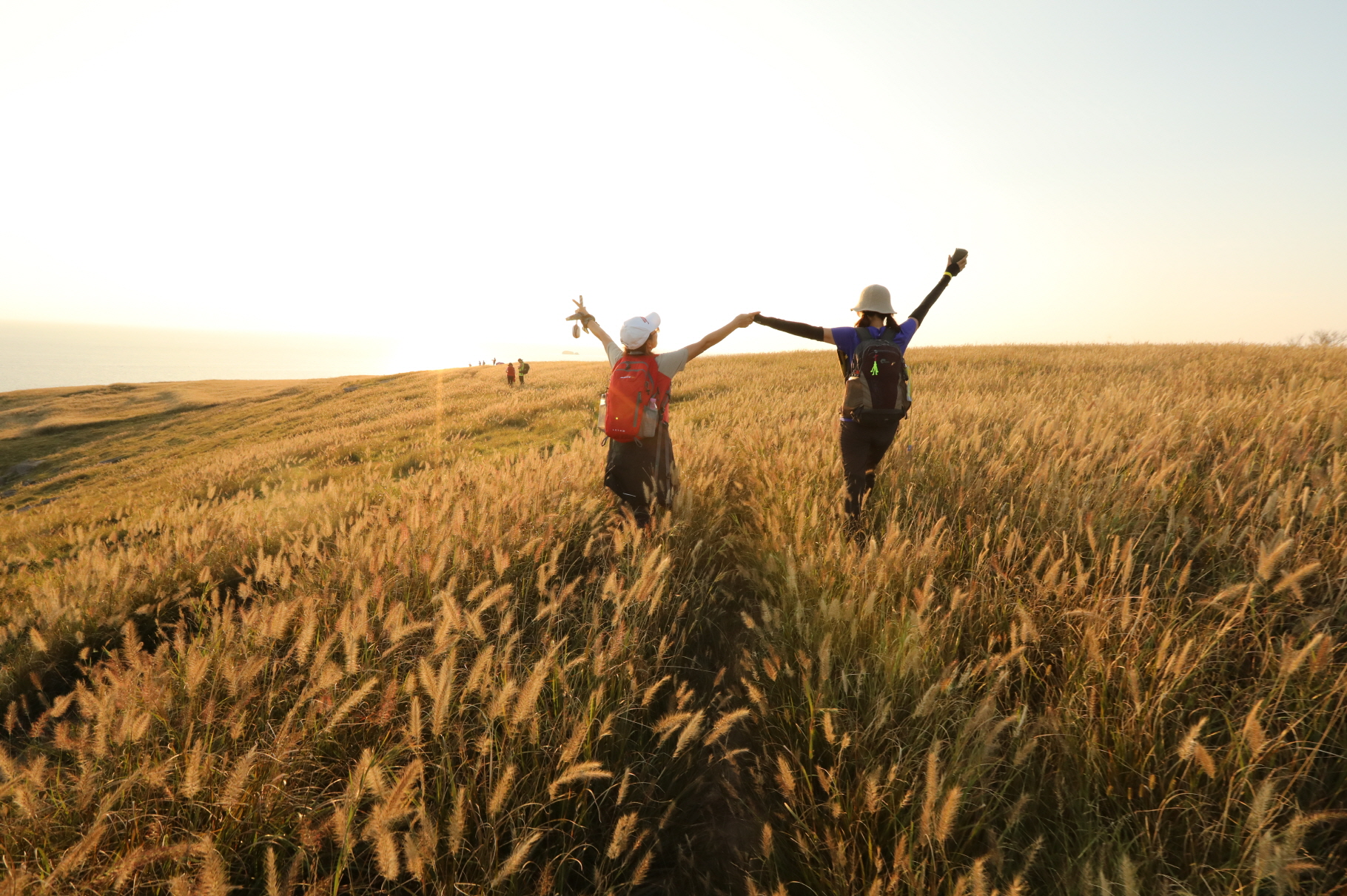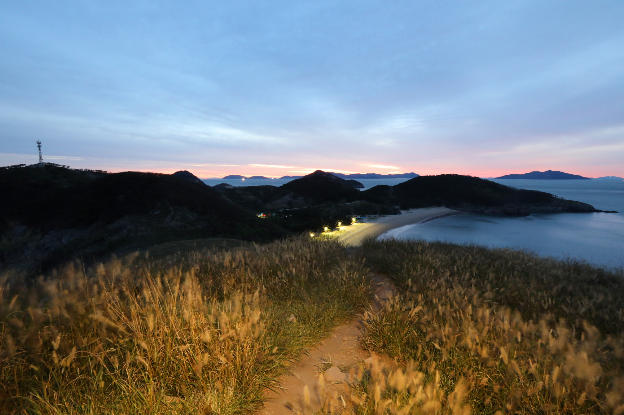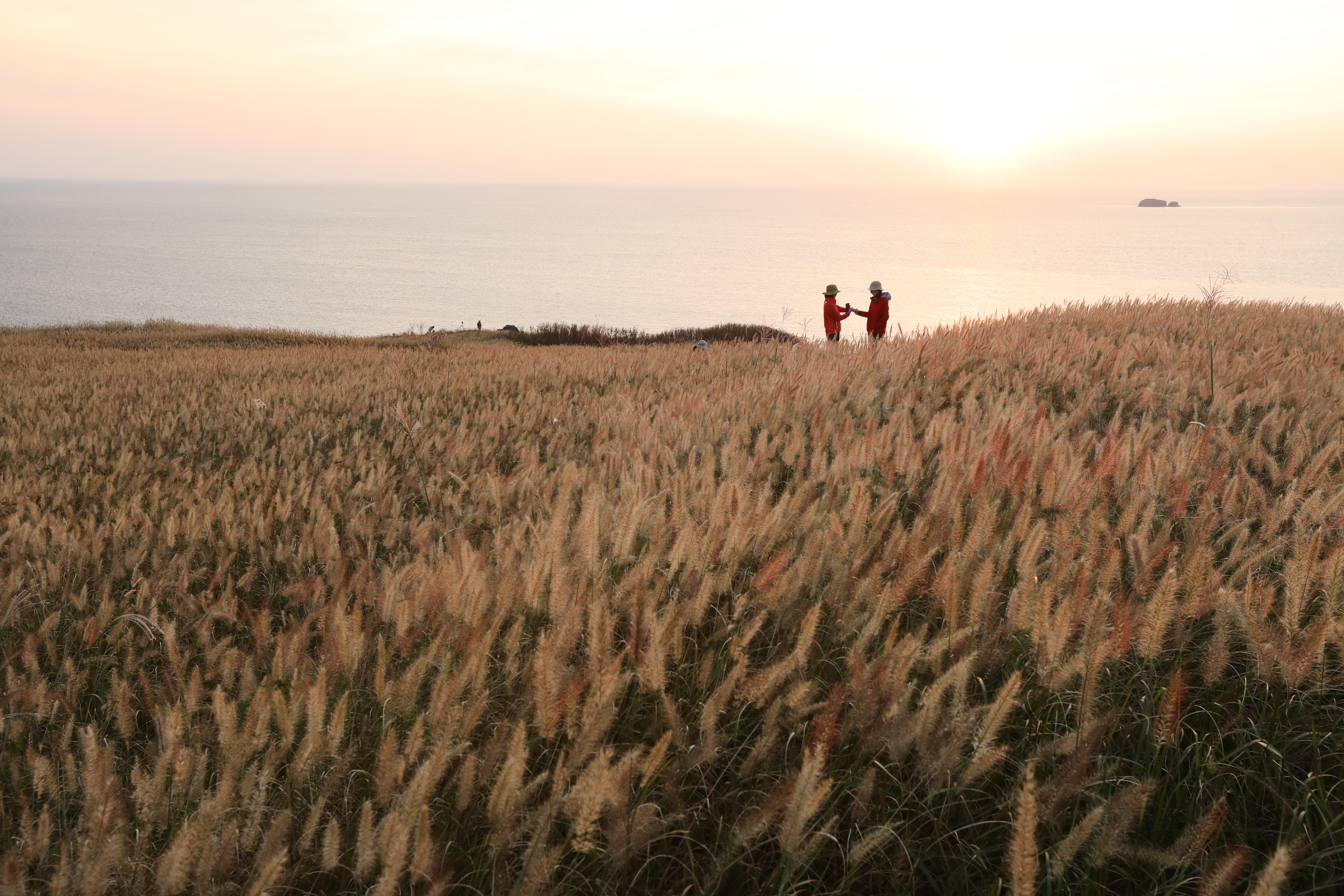 개머리 정상에서는 부드러운 구릉과 억새 초원, 그리고 옥빛 바다가 빚어낸 완벽한 풍경을 감상할 수 있다