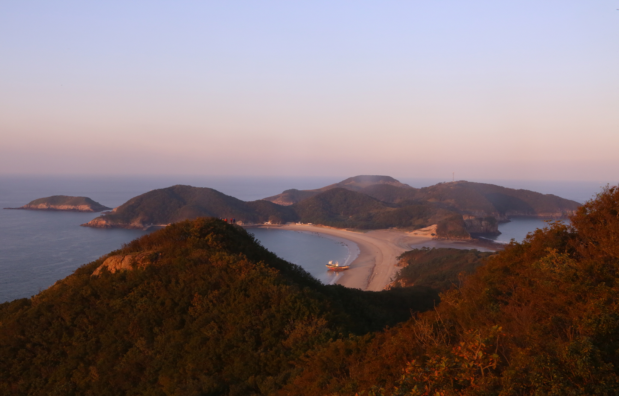 굴업도의 최고봉(122m) 덕물산에서 맞는 일출은 장관이다. 붉게 물든 바다와 섬들이 어우러진 풍경은 굴업도의 하이라이트다.